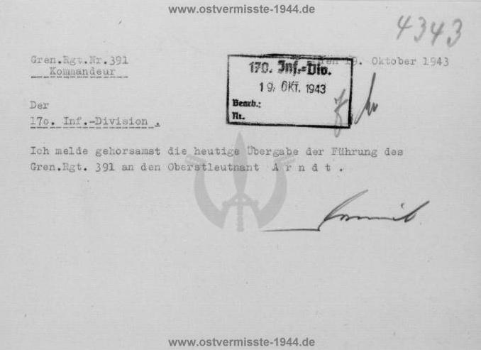 10.10.1944 wurden das Grenadier Regiment 1065 und das Kampf - Marsch-Btl. 1034