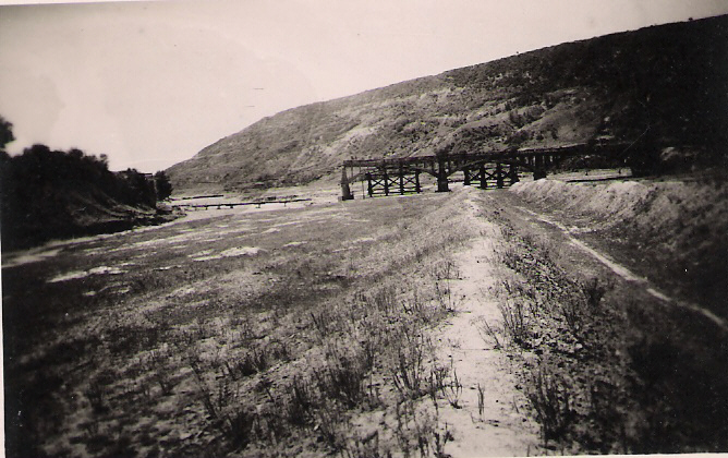Krim Die Brücke über den Dyster. Wir waren vorher mit Sturmbooten und Flossäcken rübergegangen. |