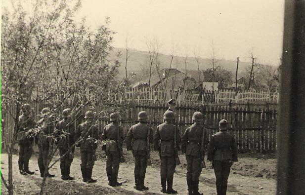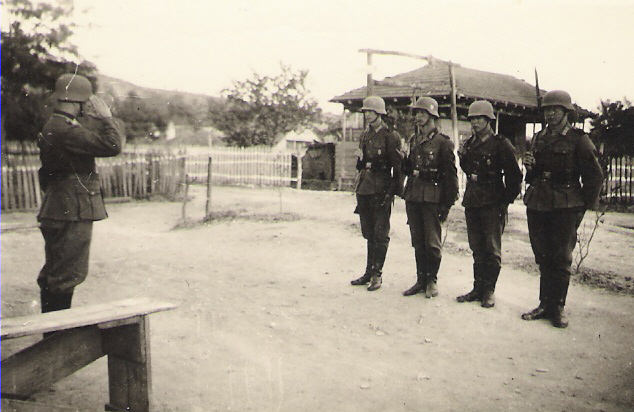 Rumänien Vergatterung - Die Wache tritt morgens vor dem Adjutanten raus. Die große Anzahl der Posten erklärt sich daraus dass Fahrzeuge bewacht werden müssen. |
