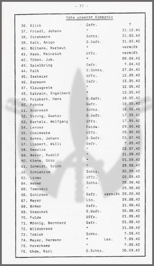 Tote unserer Kompanie